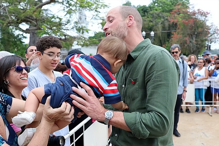 一个兴奋的祖母把十个月大的小若阿金・蒙泰罗推到他面前,这位未来的英国国王小心翼翼接过婴儿,笑着打趣千万别把他摔了,随即温柔抱在怀里。